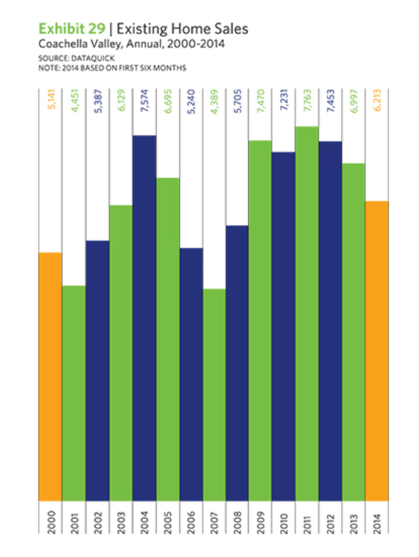 In the past four years the existing home sales have fallen in the Coachella Valley. In 2011, when the volume of existing homes selling was at the peak, 7763 homes sold. In 2012, 7453. In 2013 6,997. And last year, in 2014 the existing home sales were down to 6,213 homes. That coupled with the lack of water to support the existing homes, again begs the question: why are they building more?
