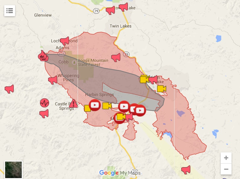 A Youtube user who goes by the handle “mulletFive” (mullets are big in Lake County) has been chronicling the inferno with raw footage as the devastation progresses. In the first video below it starts with the driver getting in his vehicle and fastening his seat belt.