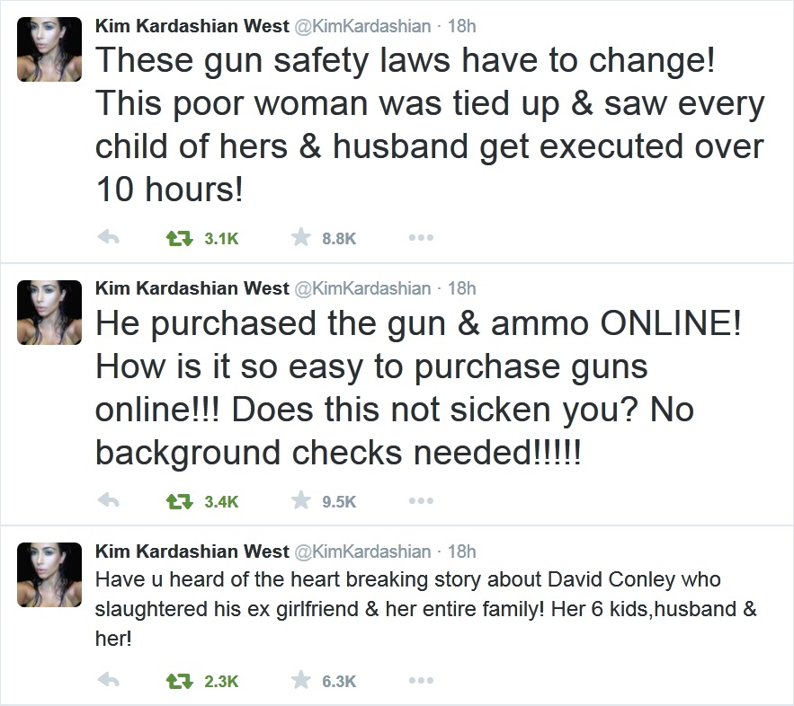 A GoFundMe page has been set up to help pay for the family’s funerals. And Kim Kardashian West is on Twitter making an emotional plea for sensible gun and ammunition laws.