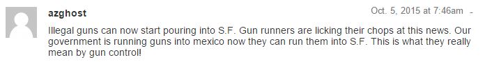 Oh no! Illegal aliens too? My goodness those people are all doomed. And at the hands of our own government no less. Yes, the feds routinely influence local ordinances so they can run guns into places like San Francisco.