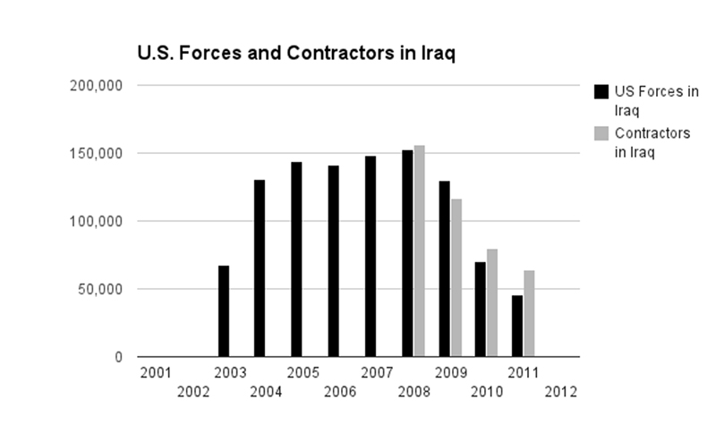 Between 2007 and 2008, there were nearly 150,000 contractors working in Iraq: