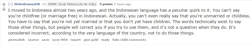 One user described living in a culture that doesn’t even have the language to describe a person who never wants to get married or have children: