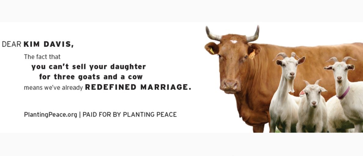 Paid for by Planting Peace, a non-profit organization, the message is a shot across the bow at Davis and Christians like her: