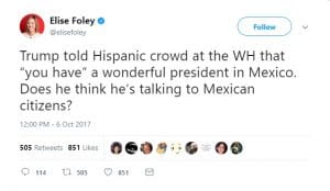 For one, yes, many Hispanic Americans come from Mexico, but they are Hispanic Americans. They’re not citizens of Mexico. Trump should have stated: “Mexico has a wonderful president.” Would he have made that comment to a bunch of white Americans?