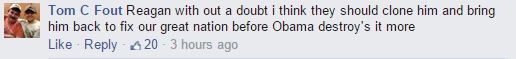 And there you have it — in Conservative fantasy land Obama is ruining the country while Reagan was a Conservative savior, but it couldn’t be further from the truth, many of the problems our country has these days are due to the lingering effects of the downright greedy climate Reagan created.