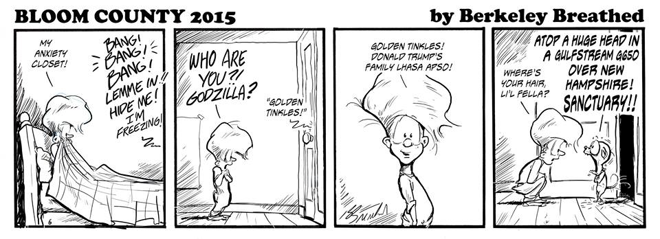 While many of the recent cartoons have been about the changes in the world since the cartoon last published, the cartoon’s creator, Berkeley Breathed, seems especially motivated by the Donald Trump campaign. He’s released several cartoons already about Trump: