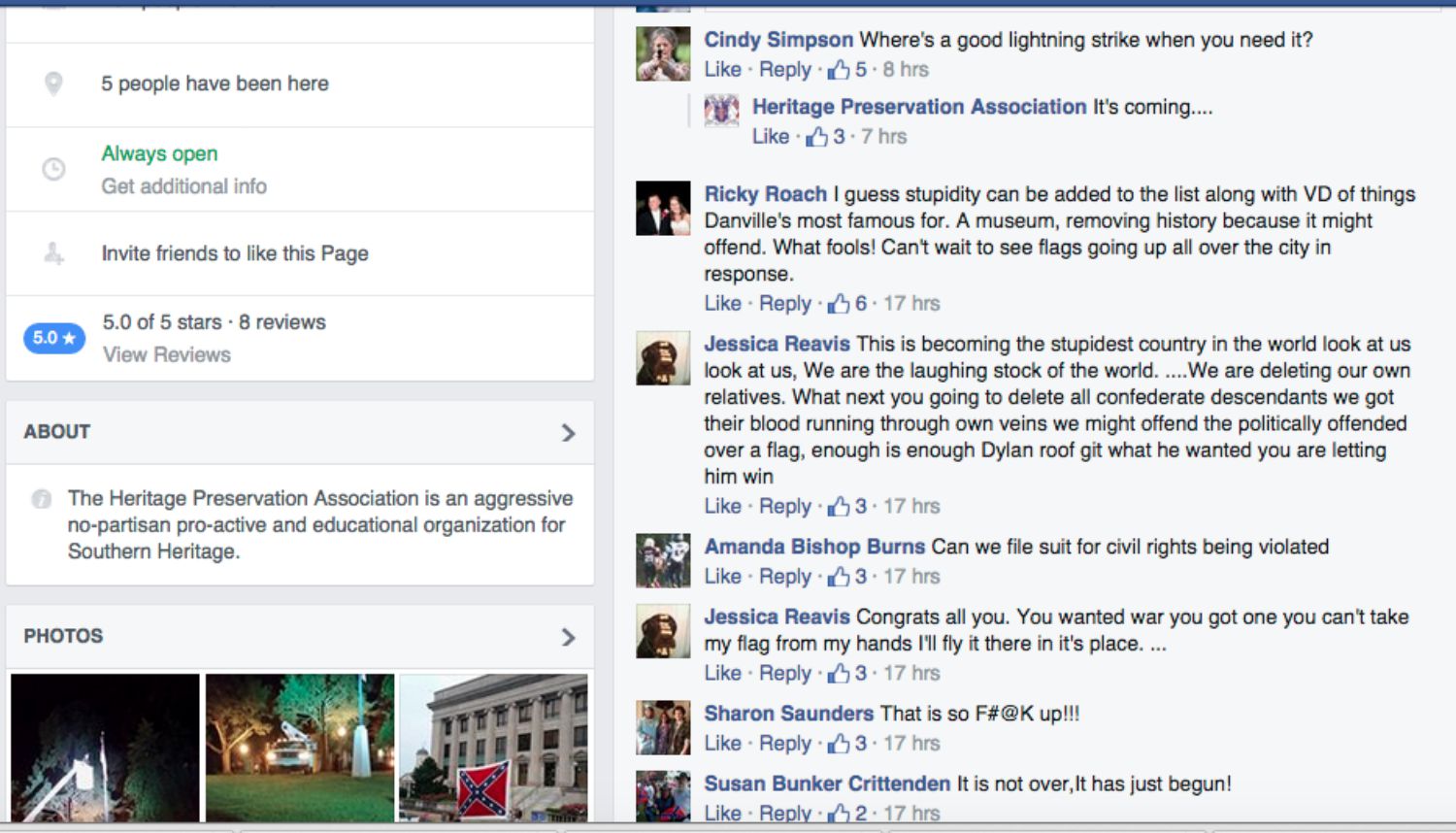 Images from the Heritage Preservation Association Facebook page show some of these not-at-all-racist supporters lounging in the shade.