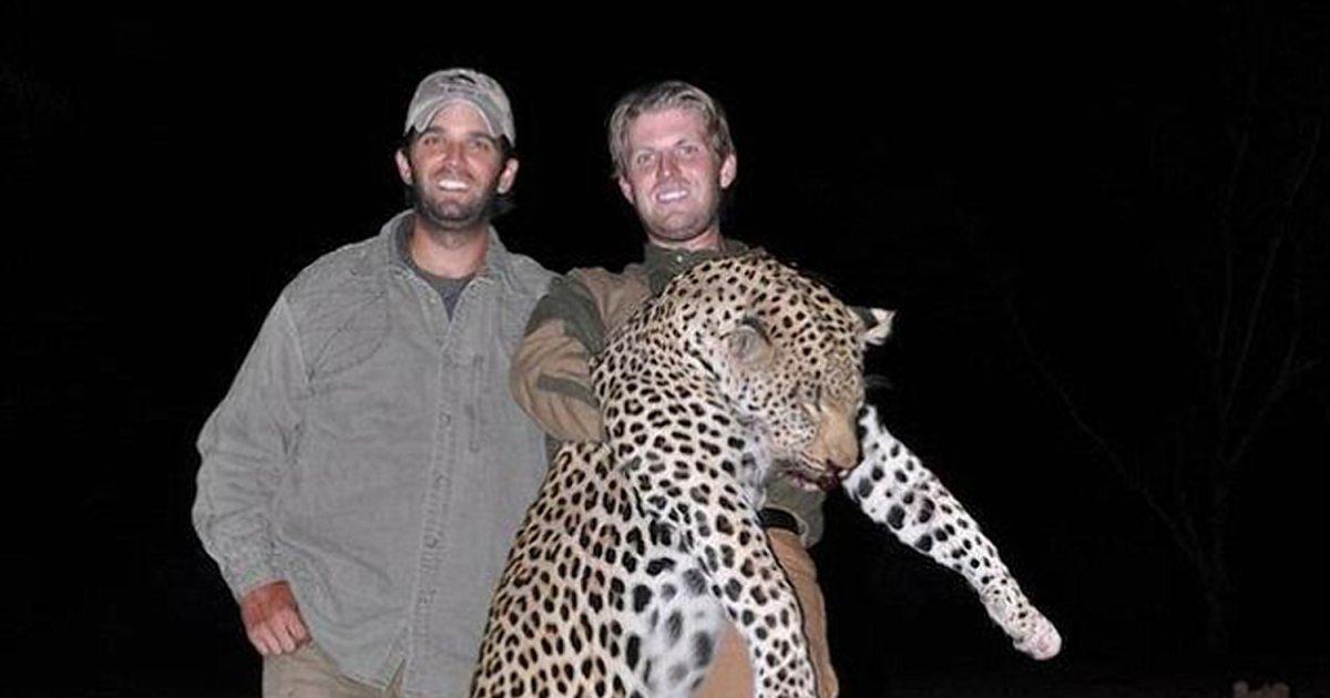 Clinton is referring to Uday and Qusay Trump, pointlessly killing elephants and leopards for no other reason than to show the world what total d-bags they are. Here’s the image of the two entitled sociopaths posing with their slain big game: