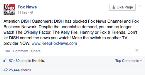 Fox News Channel did not disconnect Dish, rather, Dish prematurely ceased distribution of Fox News in an attempt to intimidate and sway our negotiations. It is unfortunate that the millions of Fox News viewers on Dish were used as pawns by their provider. Hopefully they will vote with their hard earned money and seek another one of our other valued distributors immediately.