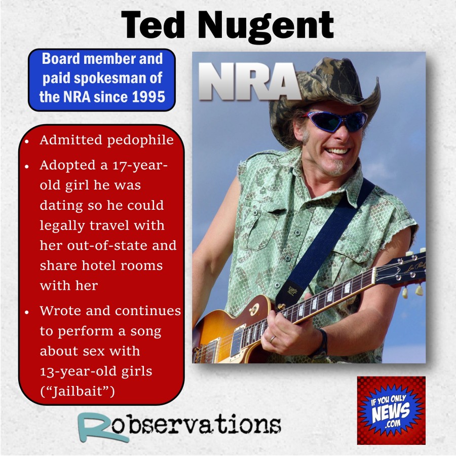 Of course, there are countless other questionable actions and statements from Nugent, ranging from racist to vulgar to xenophobic, that make it very hypocritical of the NRA to use him as its spokesman. He’s even been convicted for illegal hunting methods.