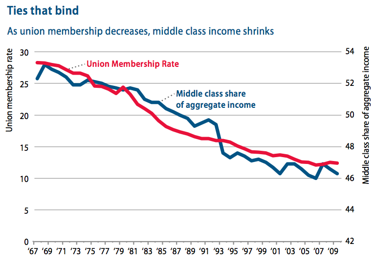 And those levels are the biggest driving factor in wage stagnation and decline in real dollars as this chart from the Center for American Progress Action Fund shows: