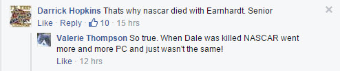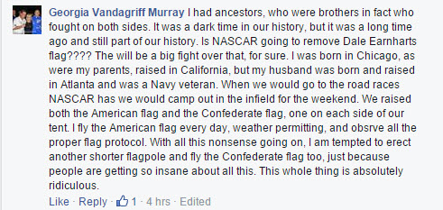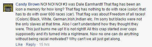 Among the barely-decipherable complaints on Fox News’ Facebook page, there are a number of remarks that Dale Earnhardt Sr. would not have stood for the removal of the flag :