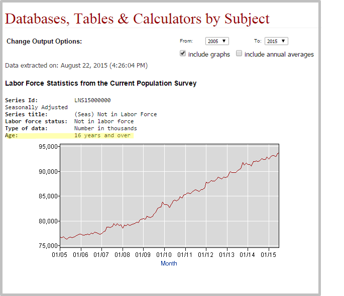 The chart does show that about 94 million people are not in the workforce, and as Rush Limbaugh points out, we are still feeding these free loaders! (Except the ones who are starving or dying of malnutrition.)