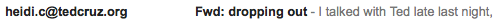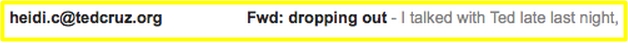 Of course, it was just a fundraiser. Playing on the recent quitting of Scott Walker — the Koch Brothers chosen candidate, this email was successful in raising eyebrows for sure. Loyal Cruz supporters must have been devastated. Of course it was just a marketing technique, but let’s face it — he uses deceptive practices like many of his opponents and fellow Republicans use bronzer. Thickly and without any shame.