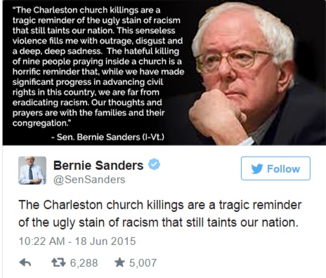 Conversely, the “radical” and “unelectable” Bernie Sanders immediately addressed the racism that motivated Roof.