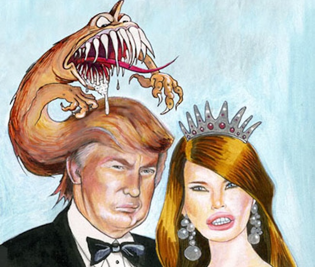 Donald Trump has seen his share of “fan” art and has been rightly roasted in political cartoons over and over again. His push to be seen as nothing more than a flashy, glittery comb-over and uninformed twit is really working, though, and artists have started creating pieces that really capture the essence of Trump.