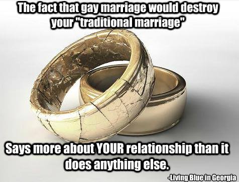 Sadly, it’s only a matter of time before some of these idiots decide to divorce, and then go to court claiming that marriage equality forced them to divorce.