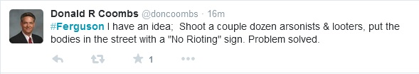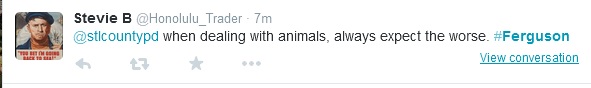 The obligatory calling of the protestors “animals.” Since he was Tweeting at the St. Louis County PD, it probably didn’t bother anyone: