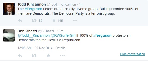 After the grand jury verdict was delivered on Monday night, the Twitter feed went crazy. Looking under the hashtags “Ferguson” and “tcot” (top conservatives on Twitter) brought up Tweets from supporters of the Browns and protestors, reporters on the scene and, of course, the hate-filled and ugly (all of the latter, tagged “tcot”).