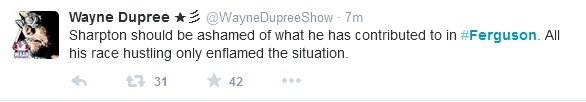 This guy seems to think that it’s all the Rev. Al Sharpton’s fault. Because no well-known black man should ever lend his gravitas to protestors: