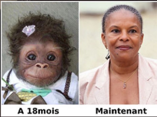 As her country’s first black Justice Minister, Taubira has been the subject of much racism, some similar to what President Barack Obama has endured. Earlier this year, Taubira was attacked by right-winger Anne-Sophie Leclere with this picture: