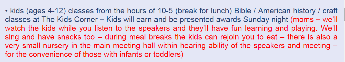 Accommodations for children, including a nursery for infants and toddlers, will be available. If elicit amounts of bigotry and hatred weren’t enough for outrage, maybe recruiting children is.