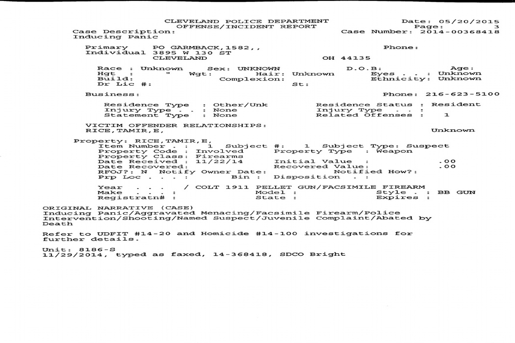 “lie on the ground.” Rice should be the poster boy for police brutality. He was 100% innocent, no record, not in the commission of a criminal act.