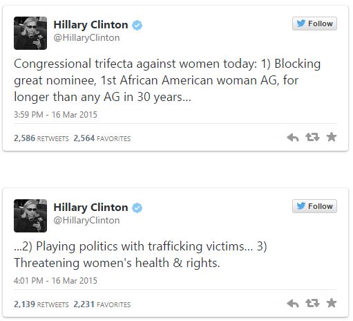 Clinton recently tweeted a “trifecta against women” perpetrated by the Republican party: