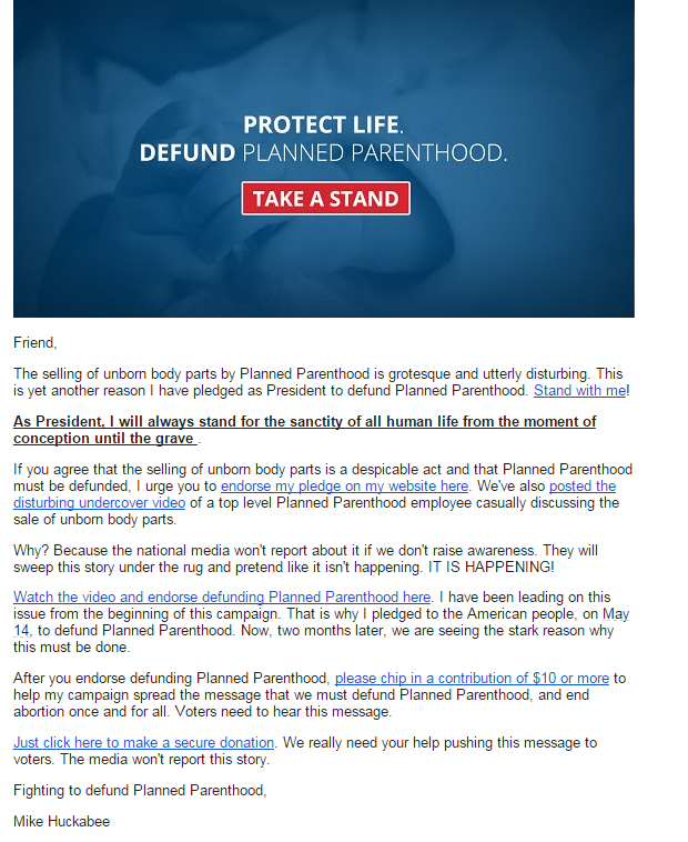 The right-wing media jumped on the manufactured outrage train, with Fox News of course leading the charge. While Bill O’Reilly called for an FBI investigation into Planned Parenthood, Megyn Kelly accused the organization of “celebrating its practice of harvesting the organs of aborted fetuses for money.”