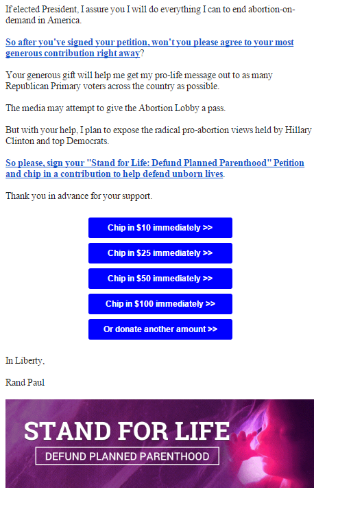Among the candidates who are using the video to raise money are Mike Huckabee and Rand Paul, both of whom are urging donors to “chip in a contribution.”