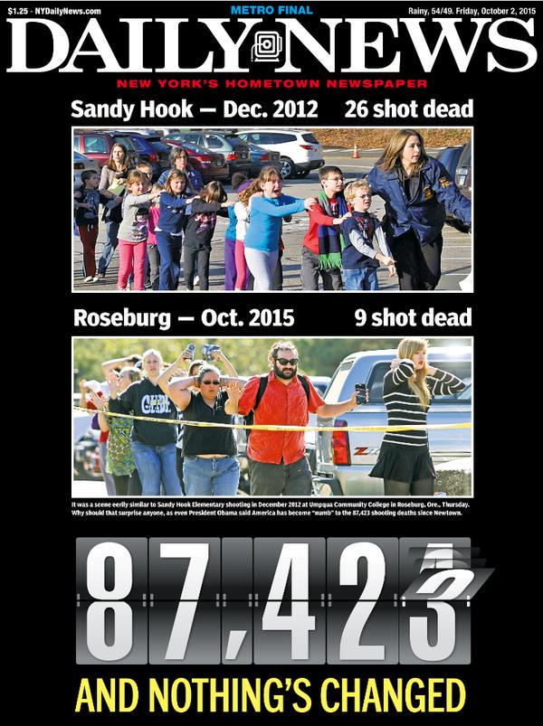 A gun massacre in America is no longer a gun massacre, but rather just another Thursday in ‘Murica. You know gun violence has reached a tipping point in this country when even the NY Daily News, not exactly a bastion of liberalism, majorly called attention to our gun terrorism in their cover for Friday’s edition.