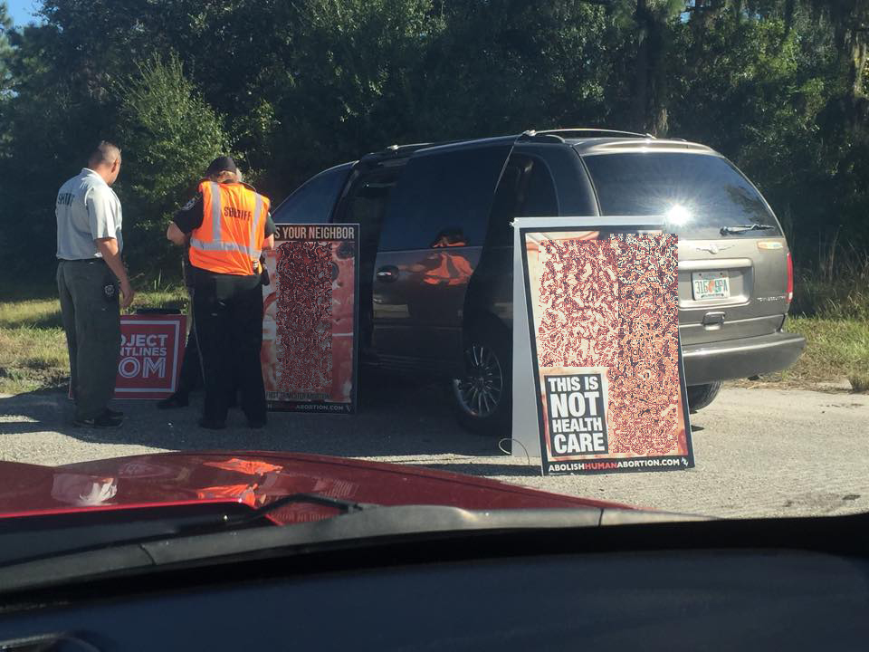 On Saturday, thousands of families were subjected to horrific pictures of mutilated babies as they entered a children’s pumpkin festival in Manatee County, Florida.